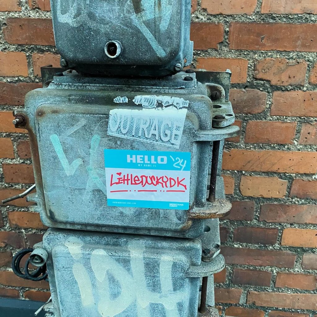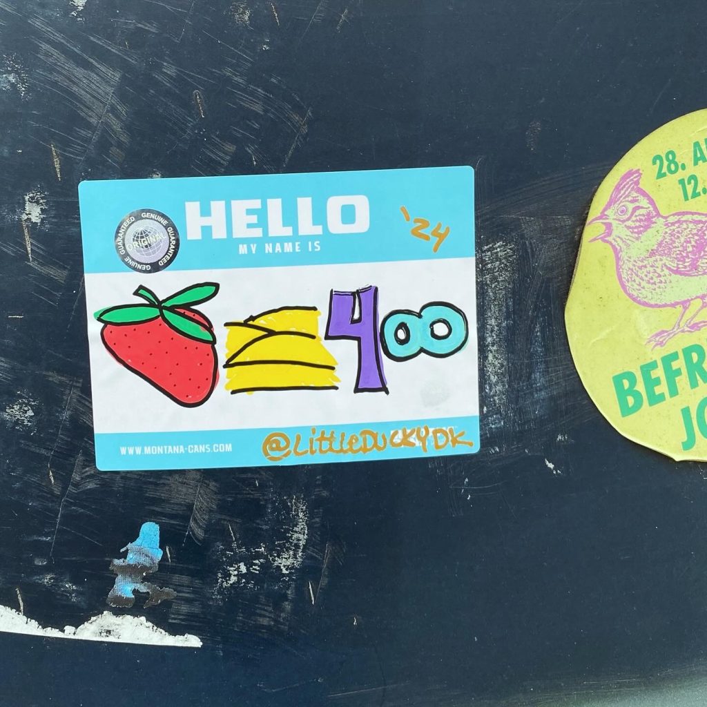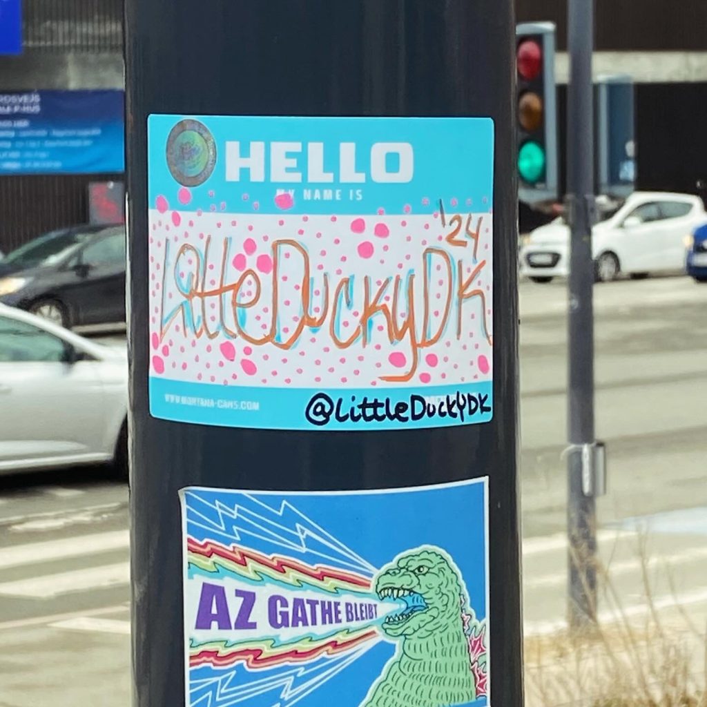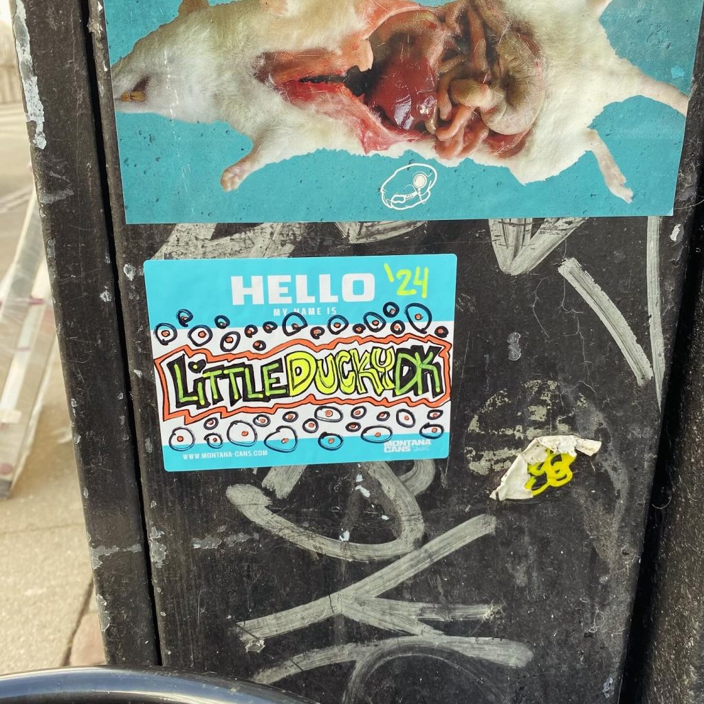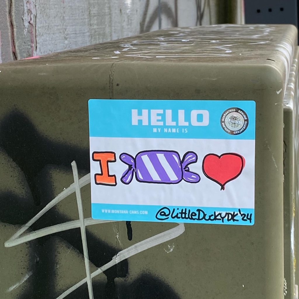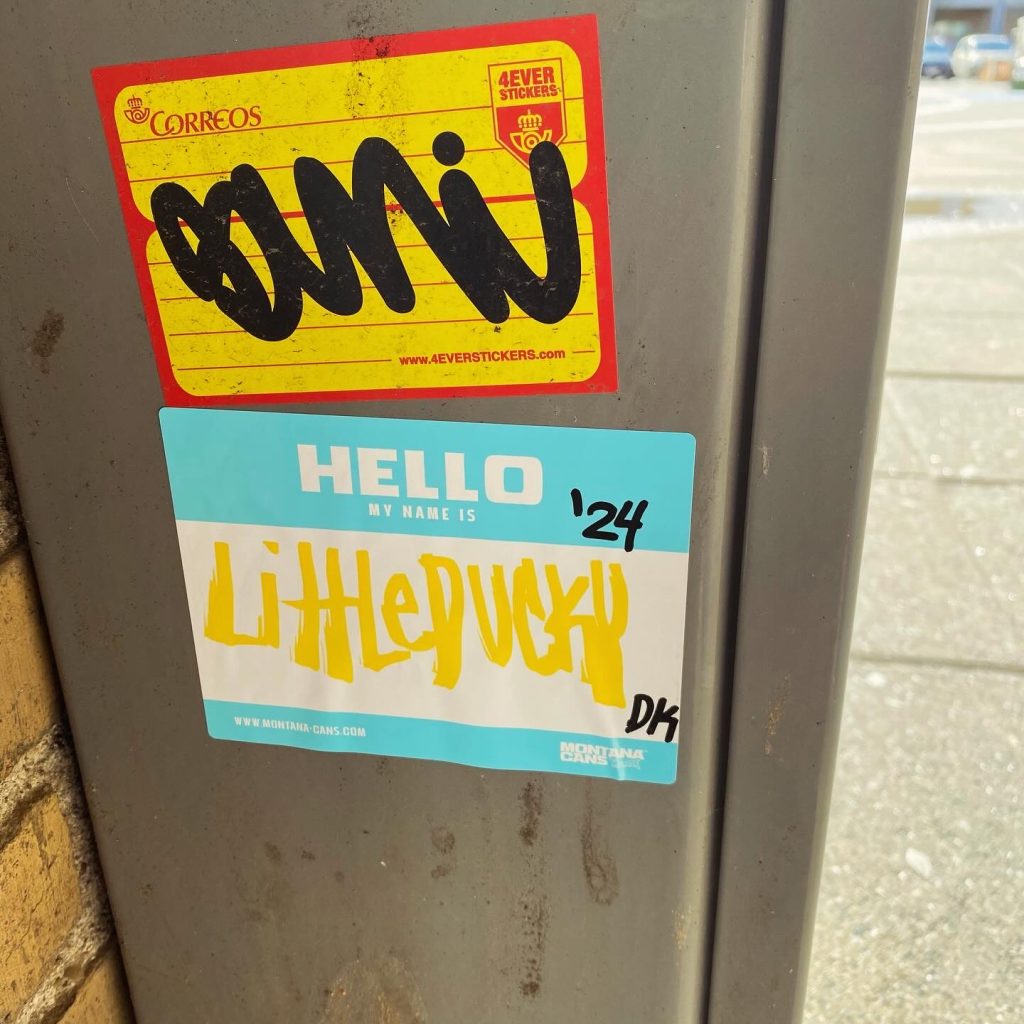 Slapping up stickers is a common practice amongst Street Artists, and is a way to get your “tag” out there, as well as letting fellow “enthusiasts” know you were here. That being said, there is even a practice of trading and collaborating on creation of stickers and their deployment in the world.