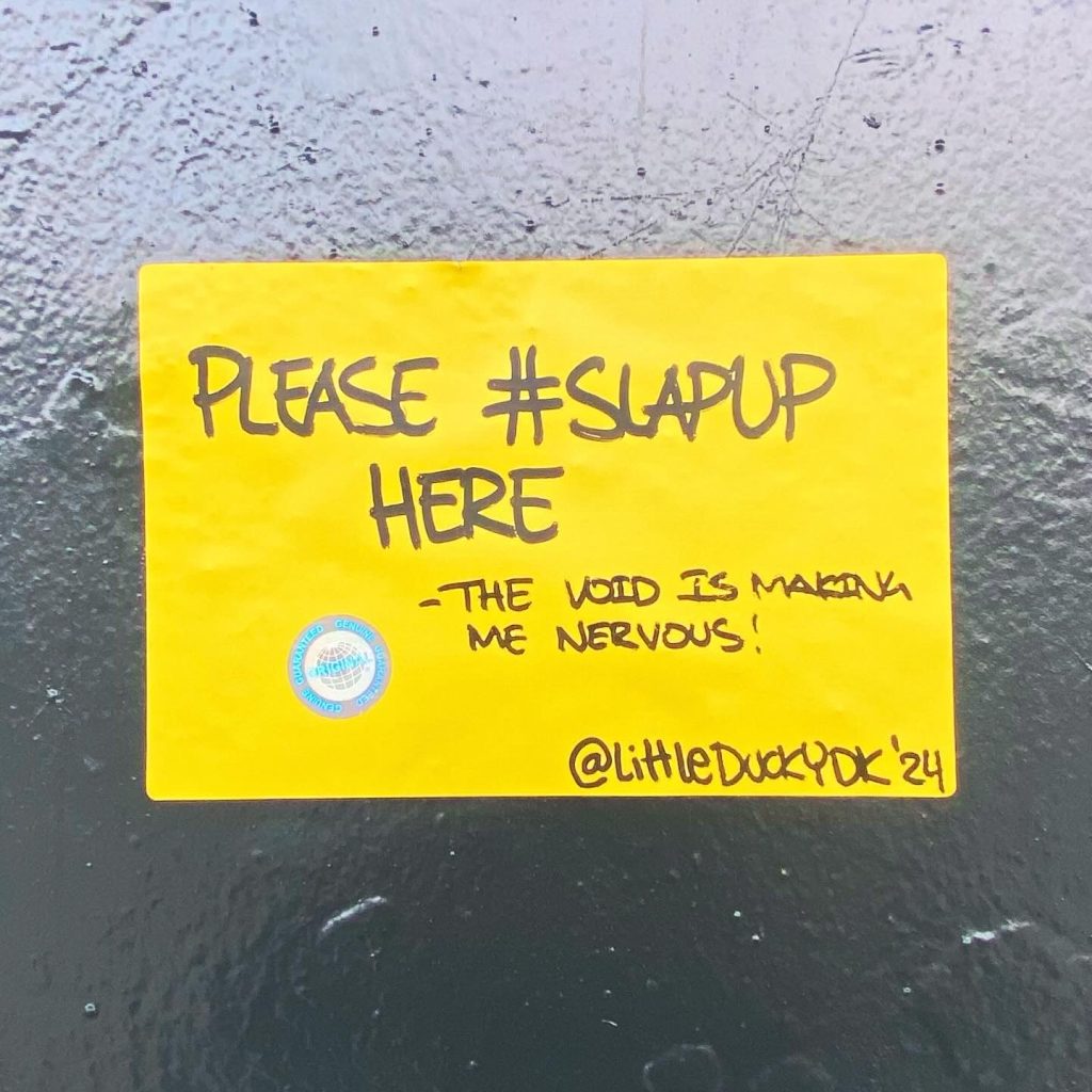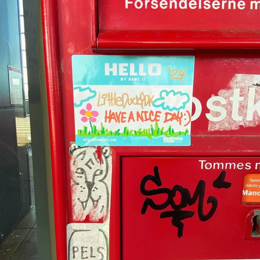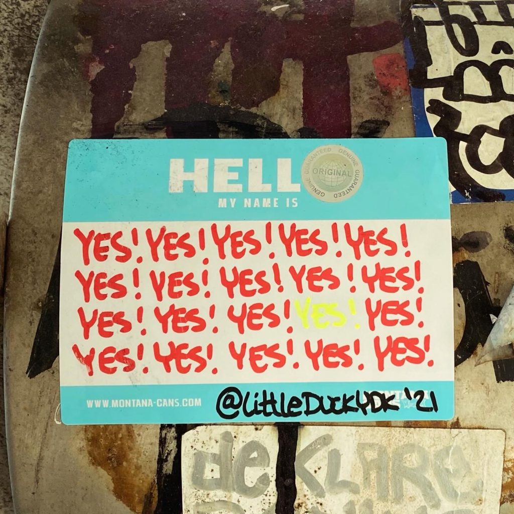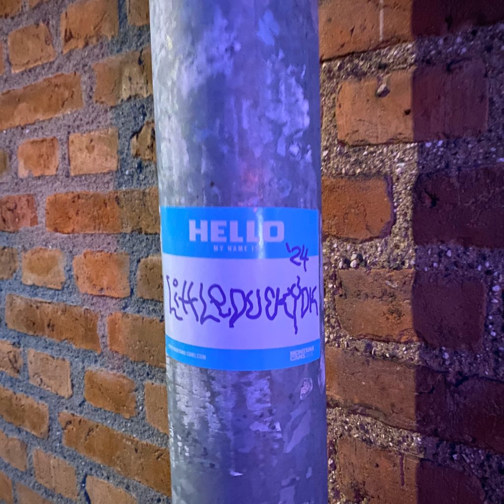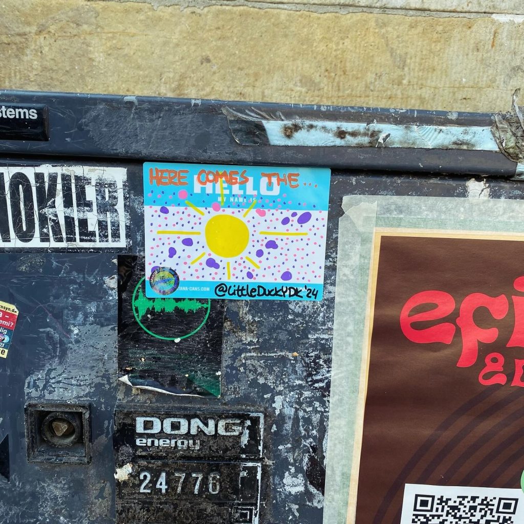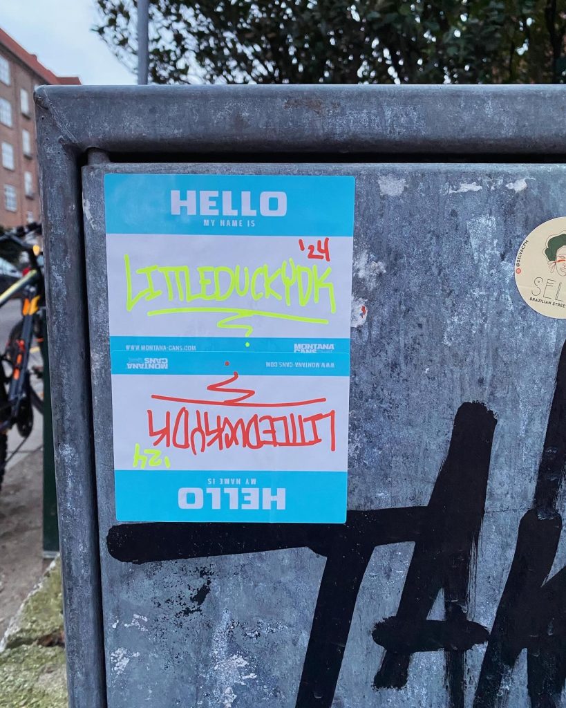Slapping up stickers is a common practice amongst Street Artists, and is a way to get your “tag” out there, as well as letting fellow “enthusiasts” know you were here. That being said, there is even a practice of trading and collaborating on creation of stickers and their deployment in the world.
