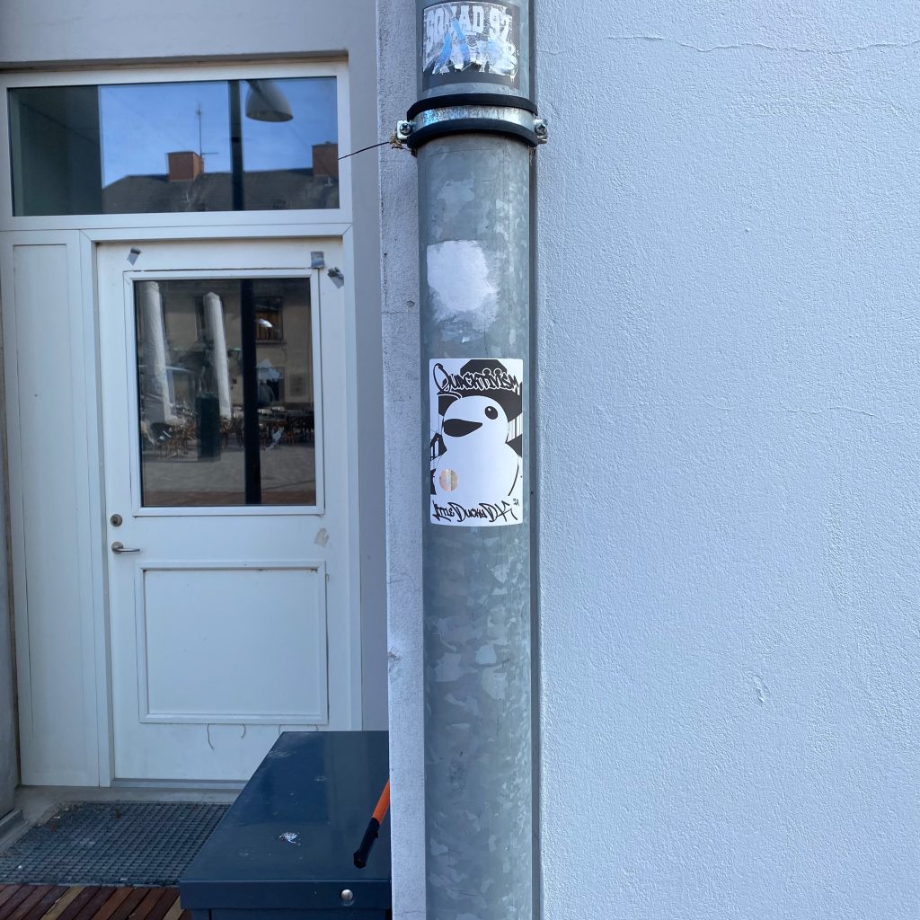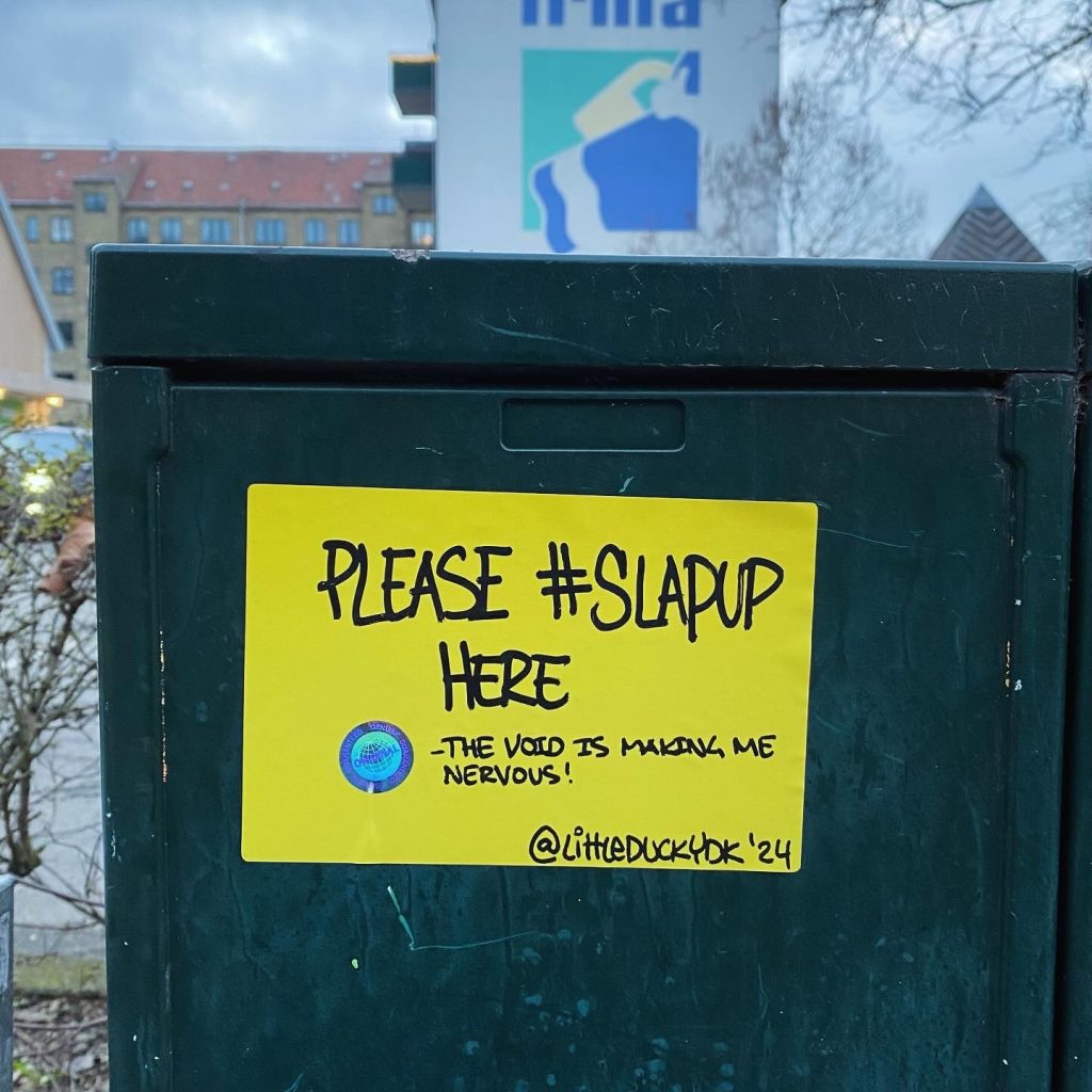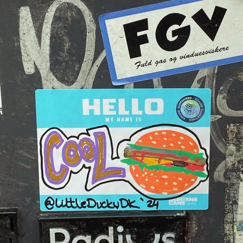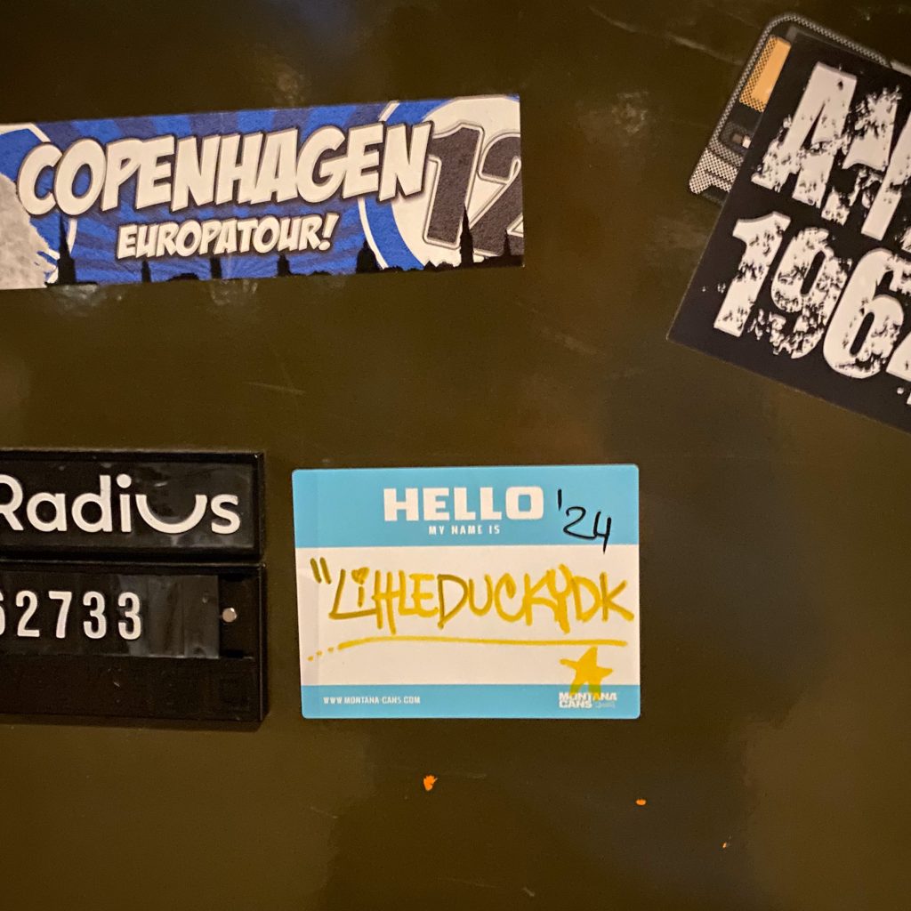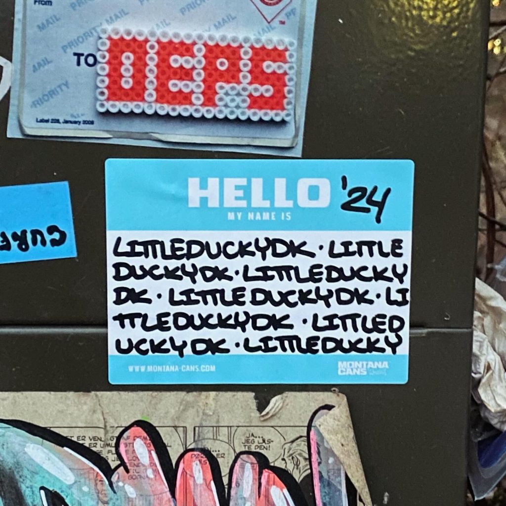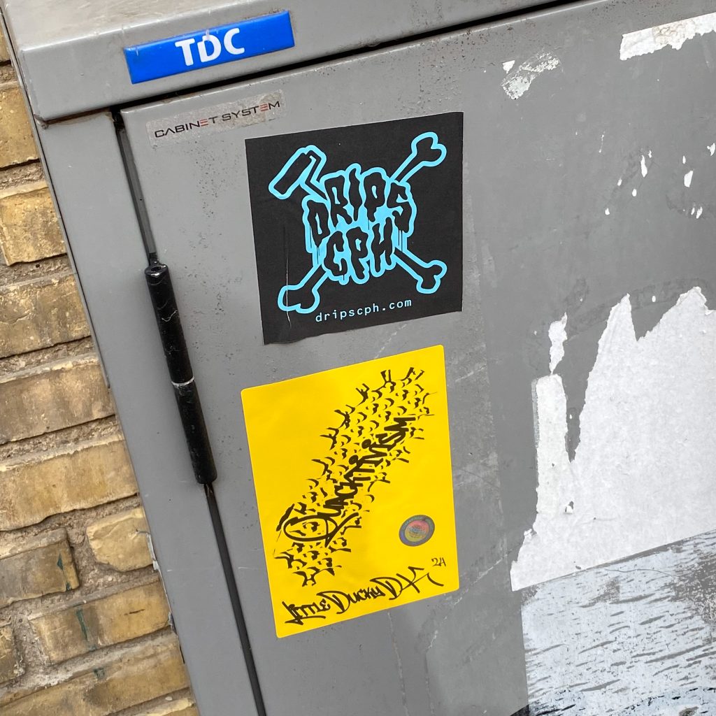 Slapping up stickers is a common practice amongst Street Artists, and is a way to get your “tag” out there, as well as letting fellow “enthusiasts” know you were here. That being said, there is even a practice of trading and collaborating on creation of stickers and their deployment in the world.