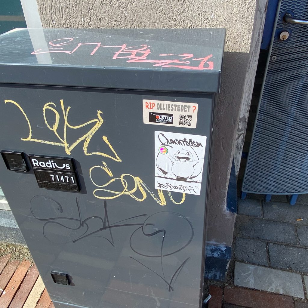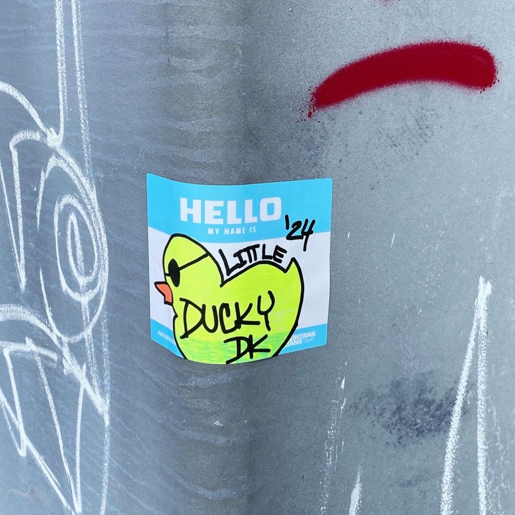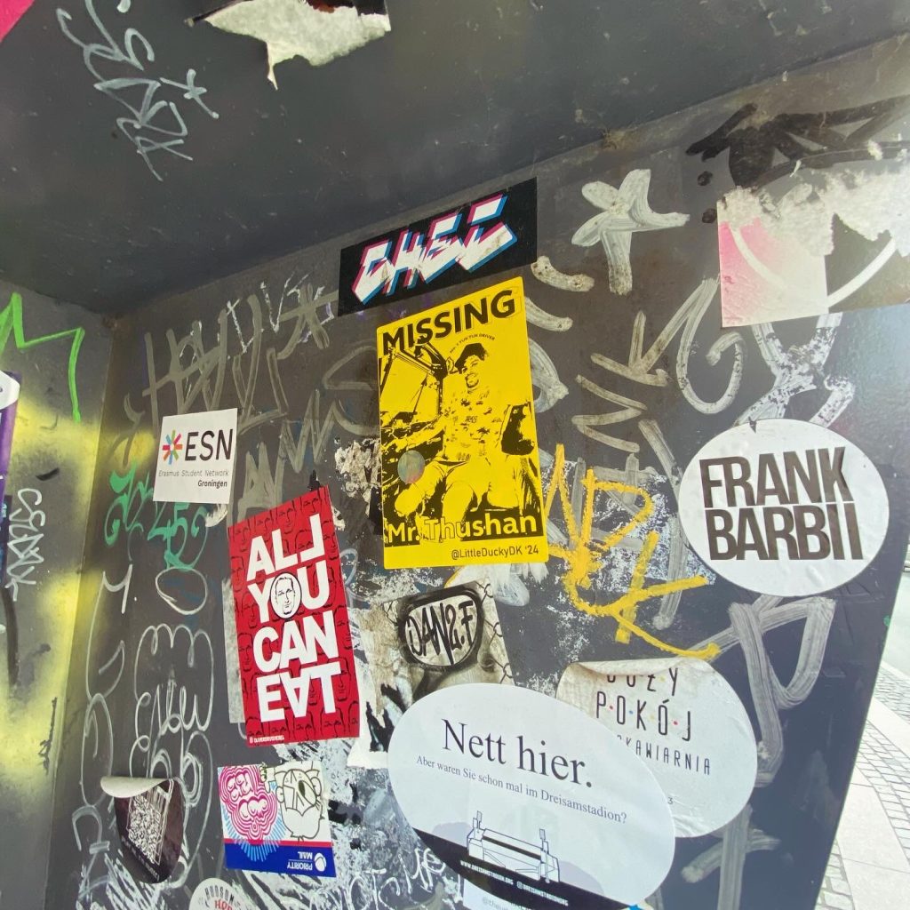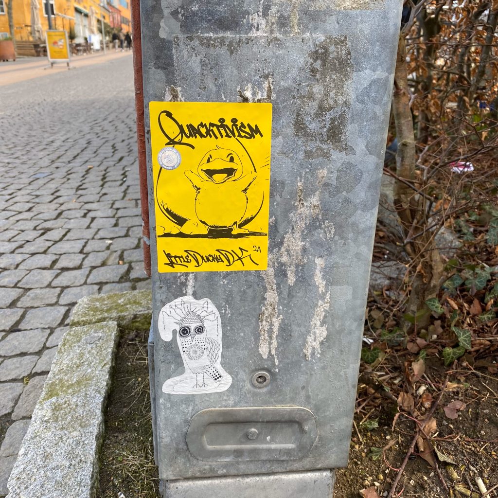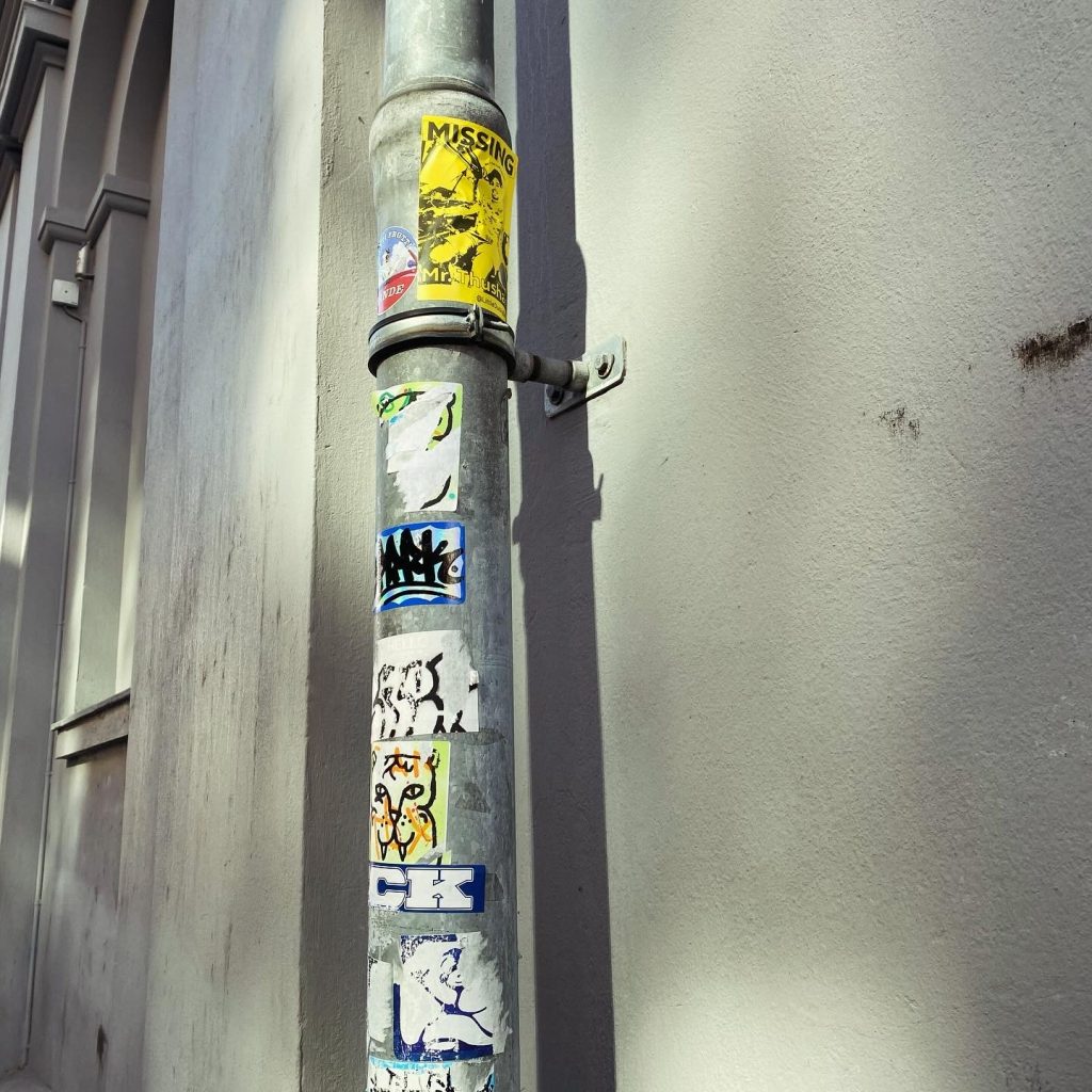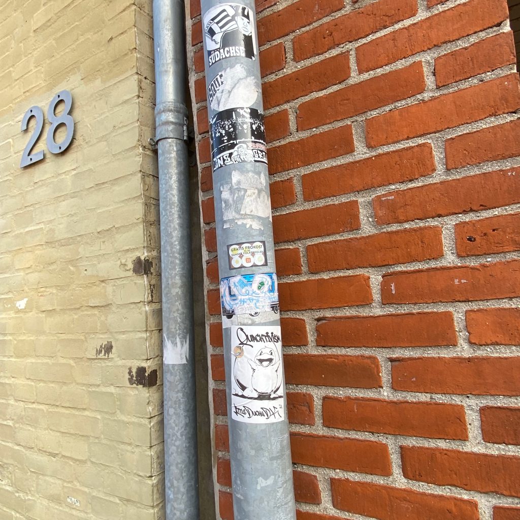 Slapping up stickers is a common practice amongst Street Artists, and is a way to get your “tag” out there, as well as letting fellow “enthusiasts” know you were here. That being said, there is even a practice of trading and collaborating on creation of stickers and their deployment in the world.